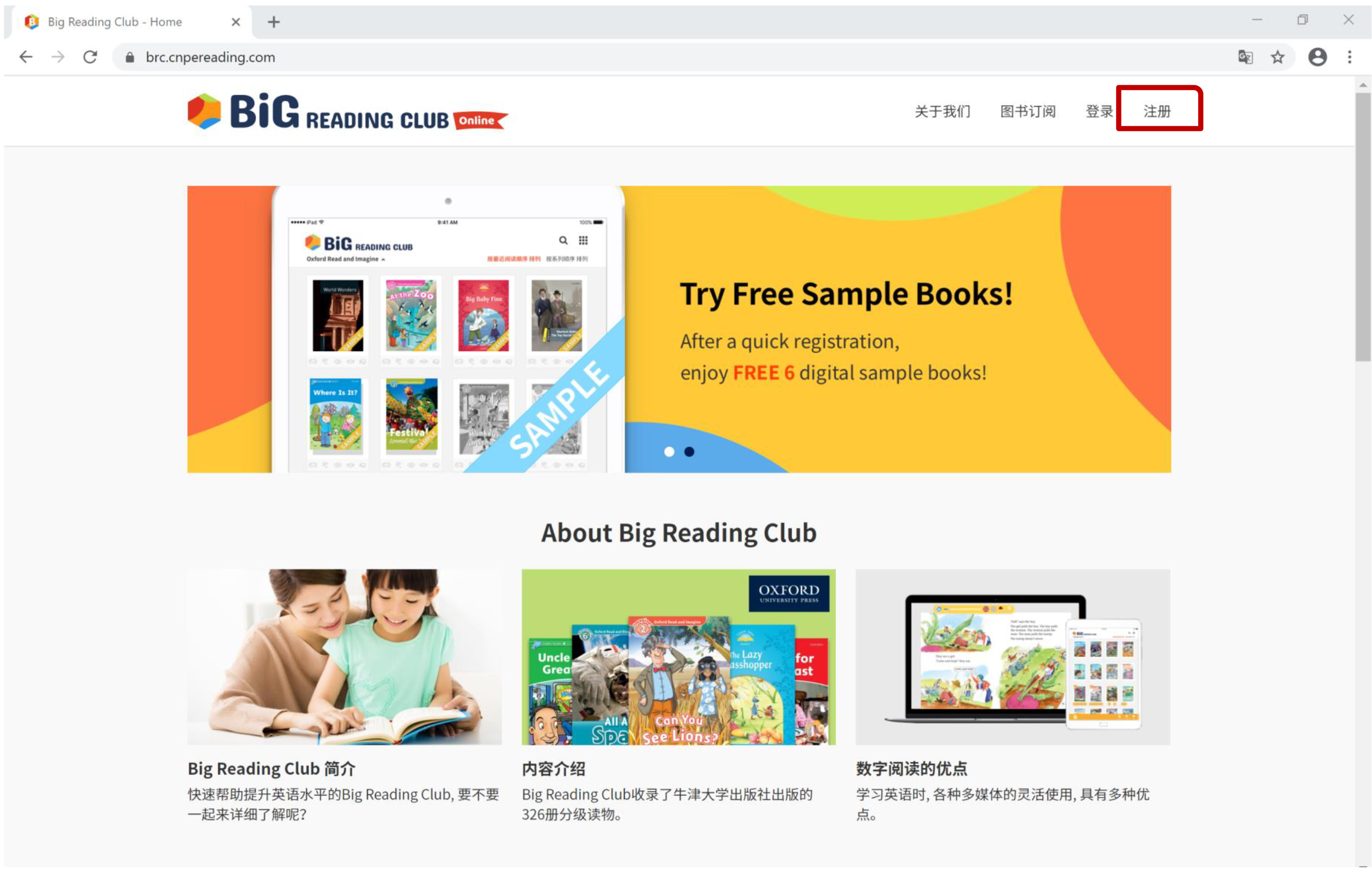 登陆brc.cnpereading.com主页,点击右上角“注册”。