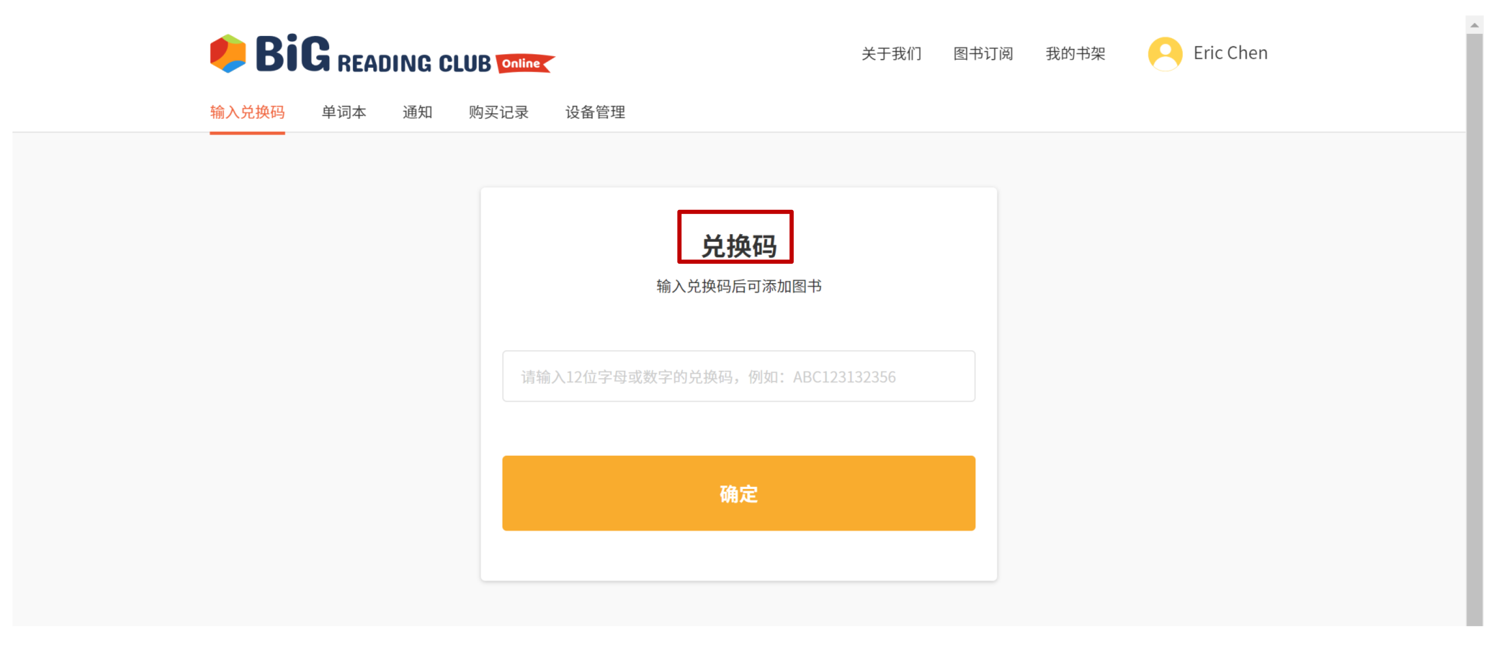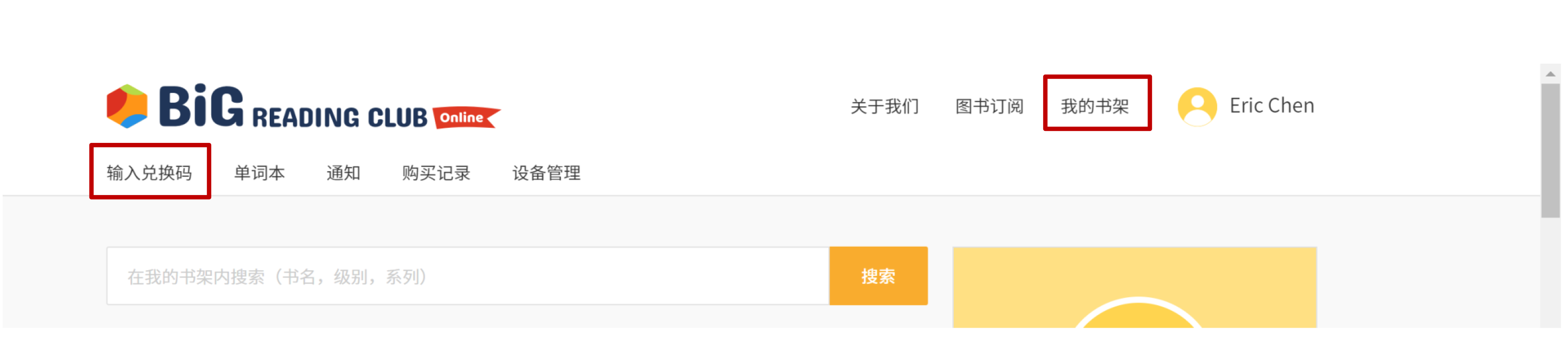 进入帐户后,点击“我的书架”,然后找到并点击“输入兑换码”。